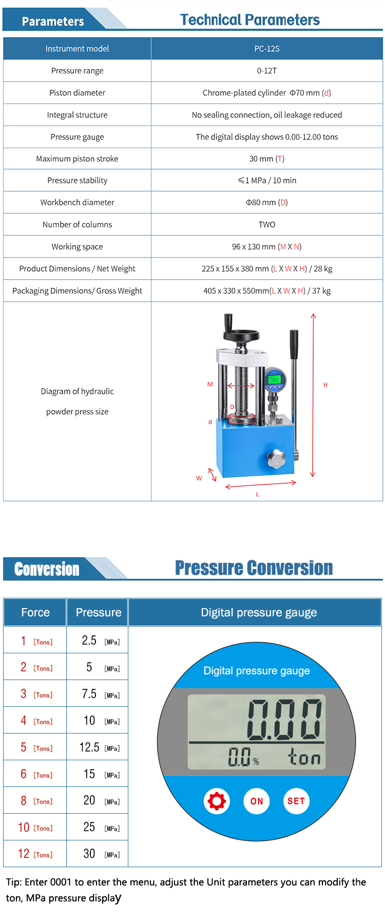 兩柱手動數(shù)顯壓片機[12噸]